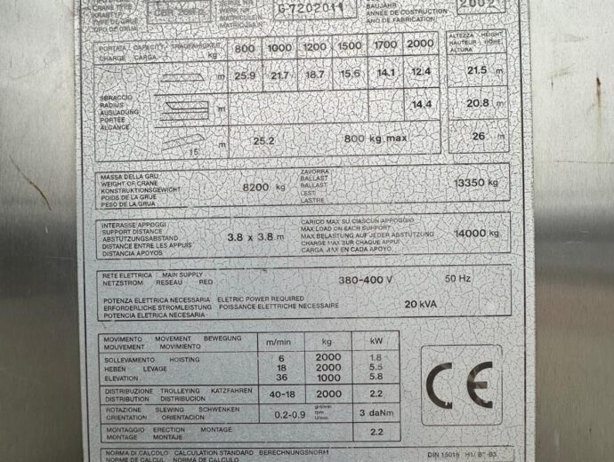 Te koop aangeboden: Terex Comedil CBR26H, een sterke en veelzijdige bouwkraan met uitstekende prestaties en een mooie hijscapaciteit. Ideaal voor uiteenlopende bouwprojecten waar betrouwbaarheid en efficiëntie centraal staan.